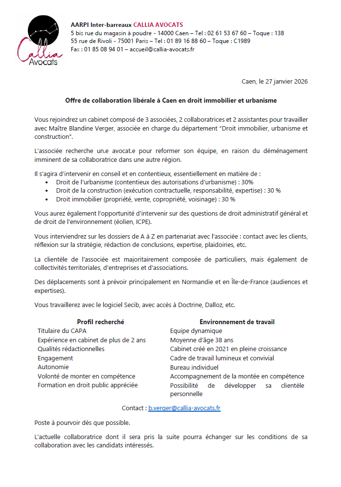 OFFRE DE COLLABORATION – DROIT IMMOBILIER ET URBANISME – CAEN