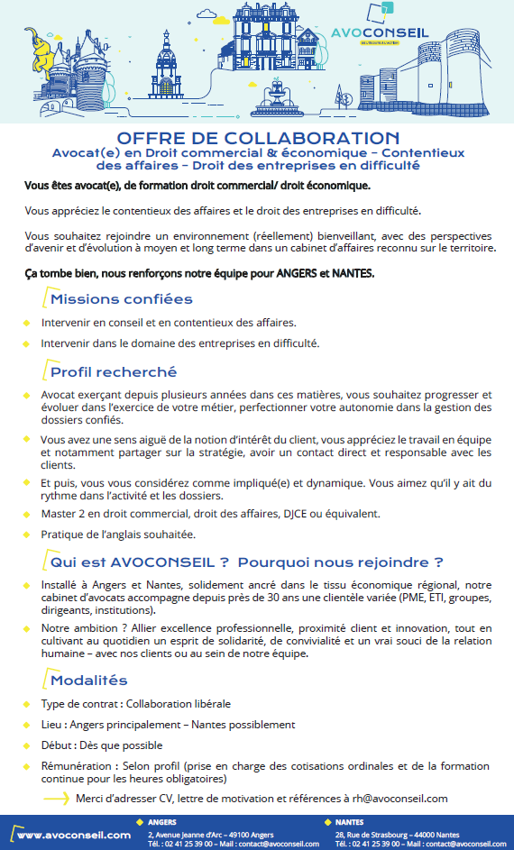 OFFRE DE COLLABORATION LIBERALE – DROIT ECONOMIQUE ET COMMERCIAL – ANGERS