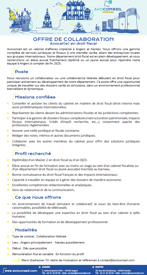 OFFRE DE COLLABORATION LIBERALE – DROIT FISCAL – ANGERS
