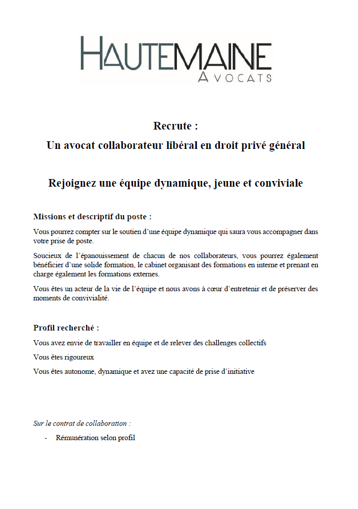 OFFRE DE COLLABORATION LIBERALE – DROIT PRIVÉ GÉNÉRAL – LE MANS