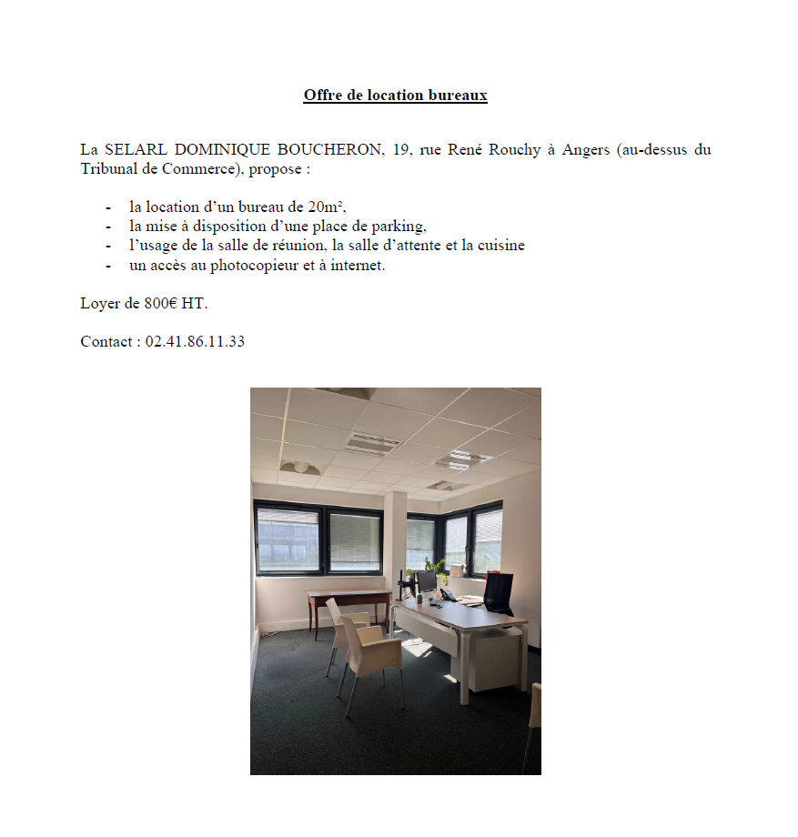 OFFRE DE LOCATION BUREAU – ANGERS